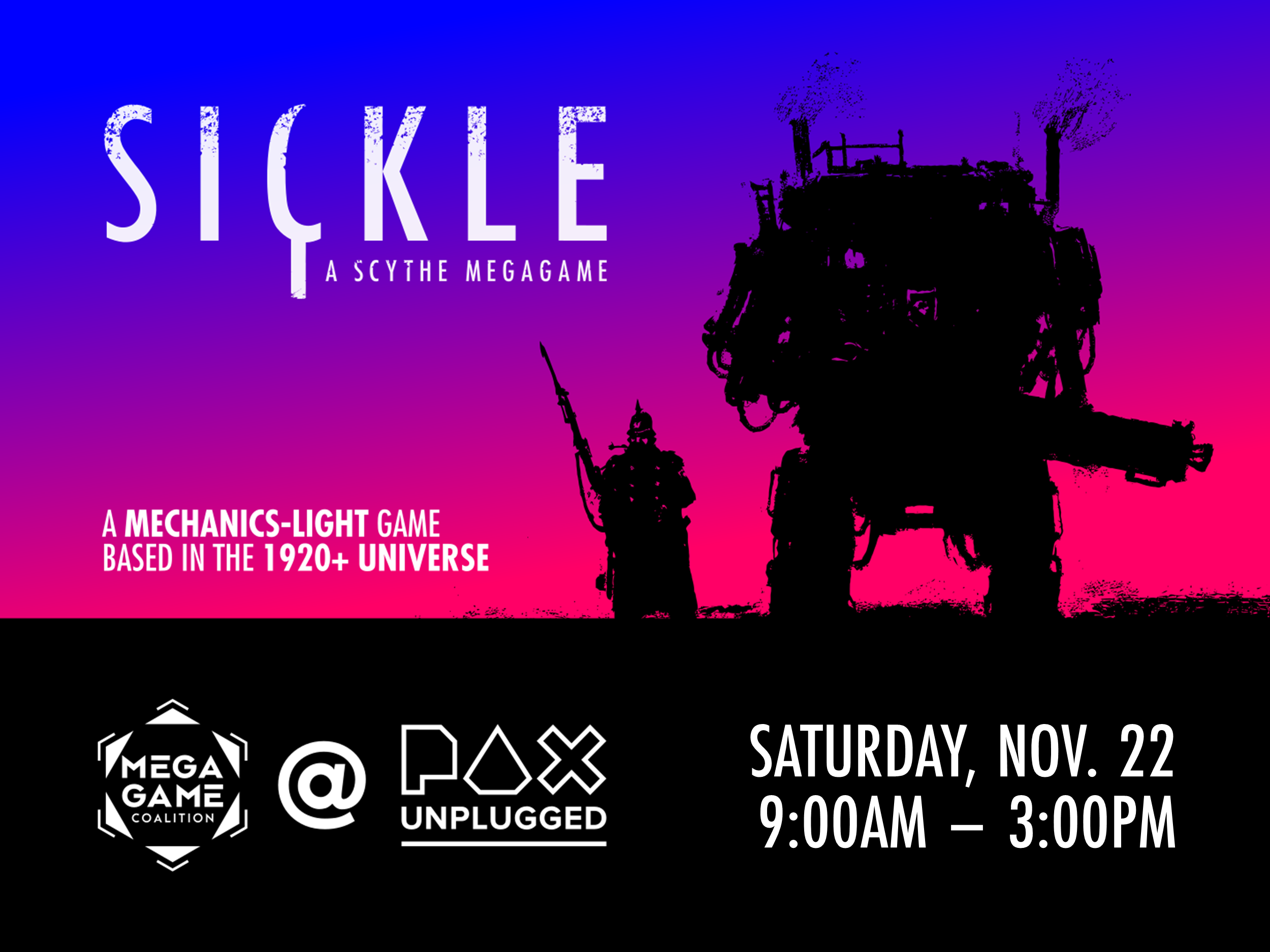 Sickle is a mechanics-light megagame inspired by the National Security Decision Making (NSDM) genre of serious games that emerged from the US Naval War College and spread to various gaming cons via the NSDM crew, but set into the alternate history setting of the 1920+ Universe. Megagamers who like to ground themselves in board game mechanics may be more comfortable playing our Gods of the Ancient World, Den of Wolves, or Touched by Darkness PAXU 2025 events.